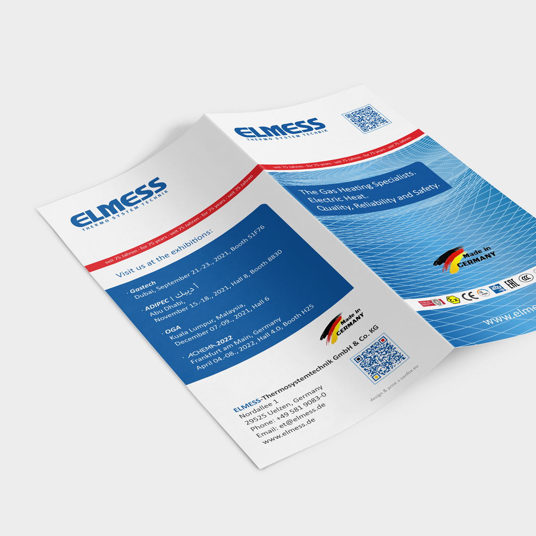 Im Auftrag der Elmess Thermosystemtechnik GmbH & Co KG aus der Hansestadt Uelzen haben wir Flyer und DIN-A1-Plakate für einen Messestand in Dubai und Texas entwickelt und gedruckt.